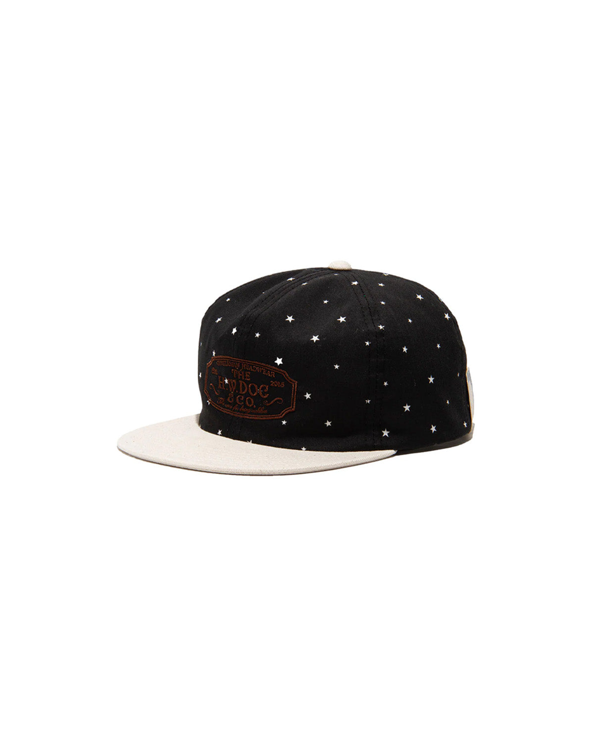 The crown is made of star-patterned cotton broadcloth, and the brim is made of plain cotton linen twill.