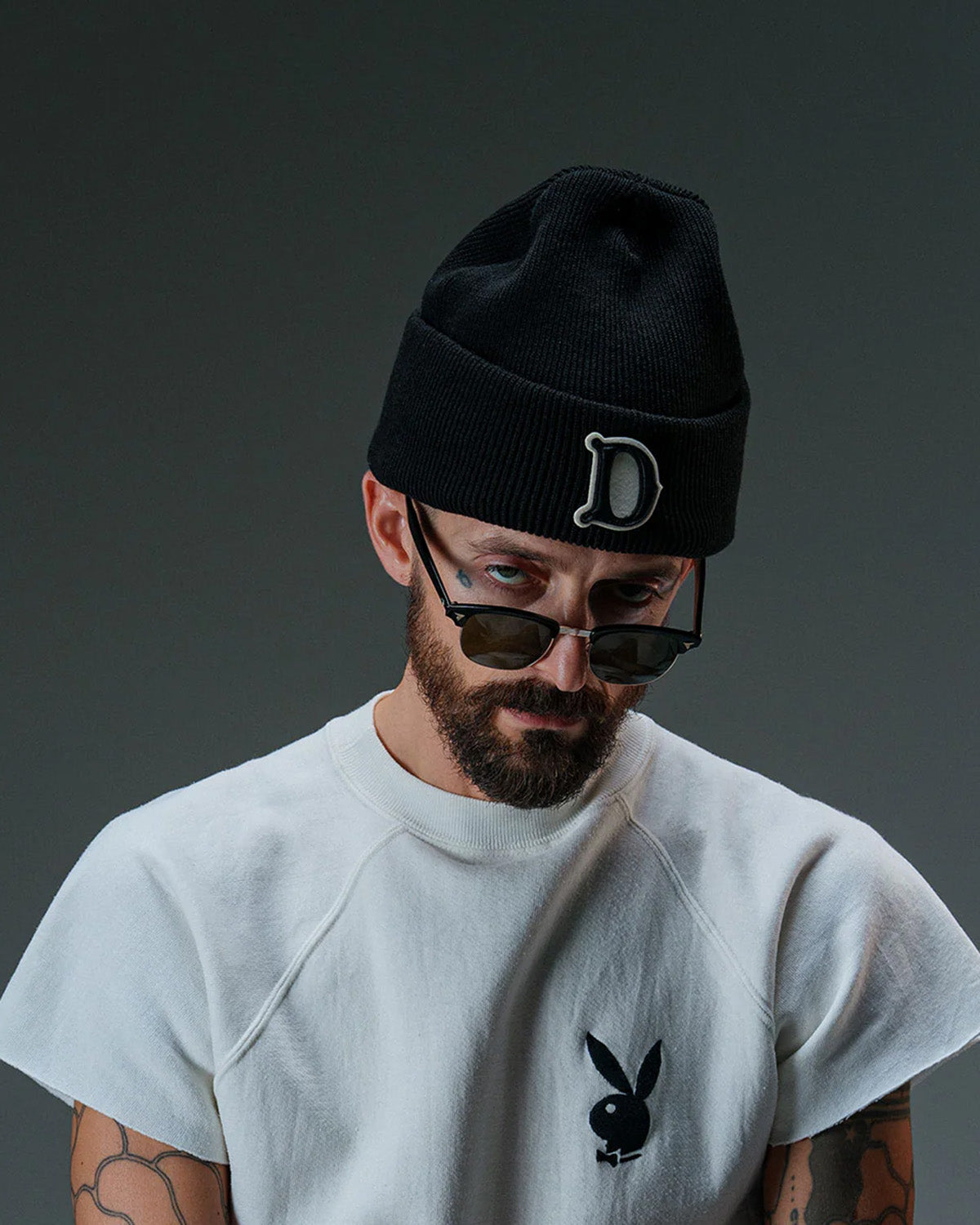 Designed with an embroidered 'D' leather applique logo badge on the ribbing.
