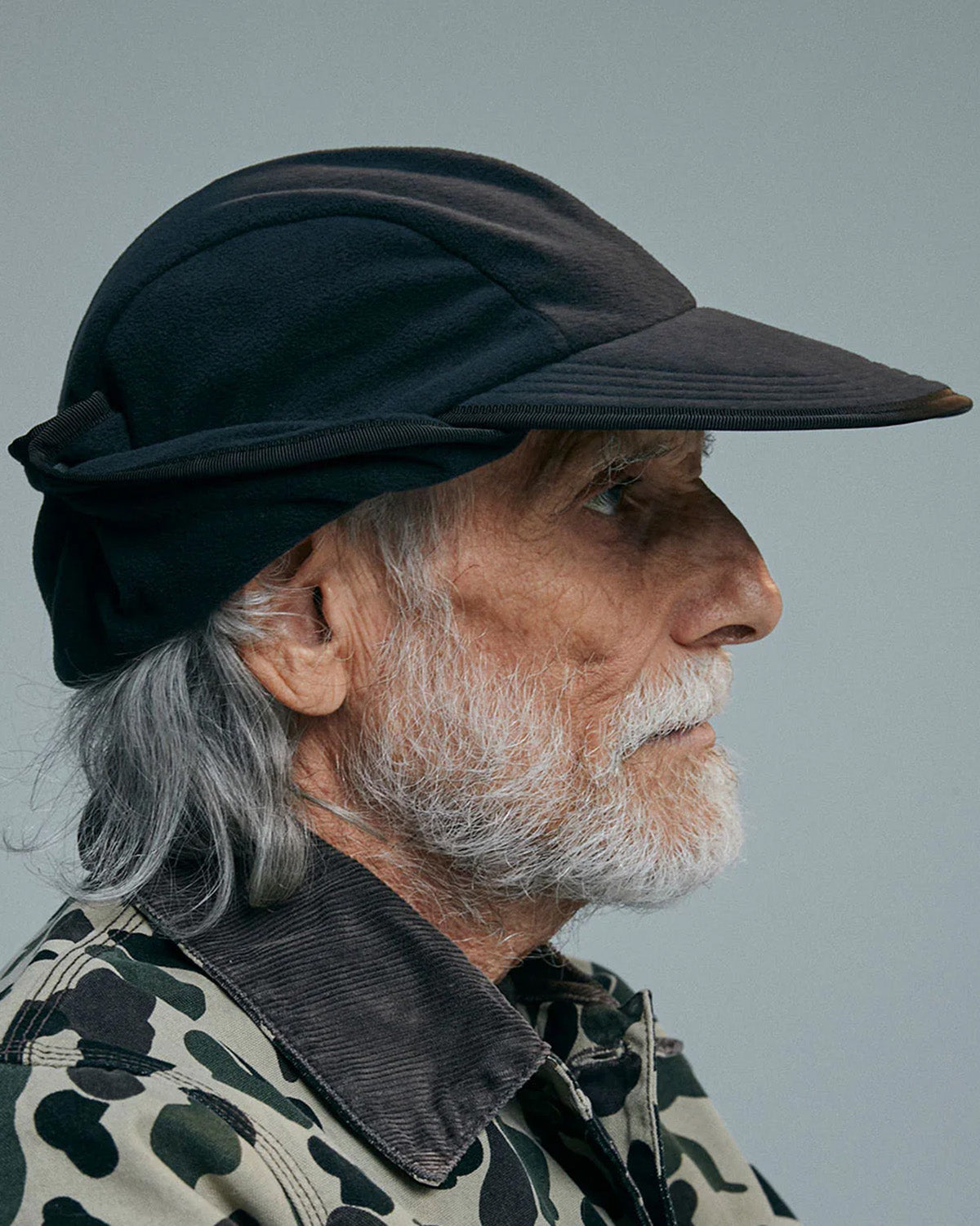 It has a foldable brim that can be pressed with a button, which helps keep your ears and neck warm, and the inside of the brim is made of water-repellent nylon fabric.