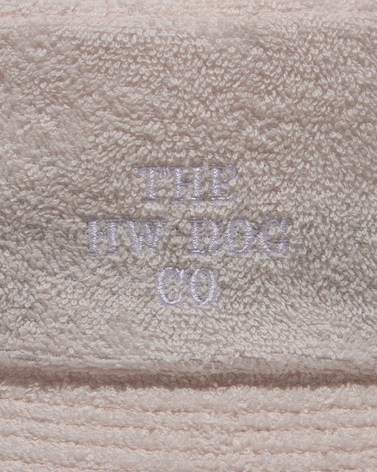 The material is a cotton and polyester blend pile fabric that is breathable and easy to match with early spring clothing, and the "THE HW DOG CO" logo is embroidered on the front in the same color as the fabric.