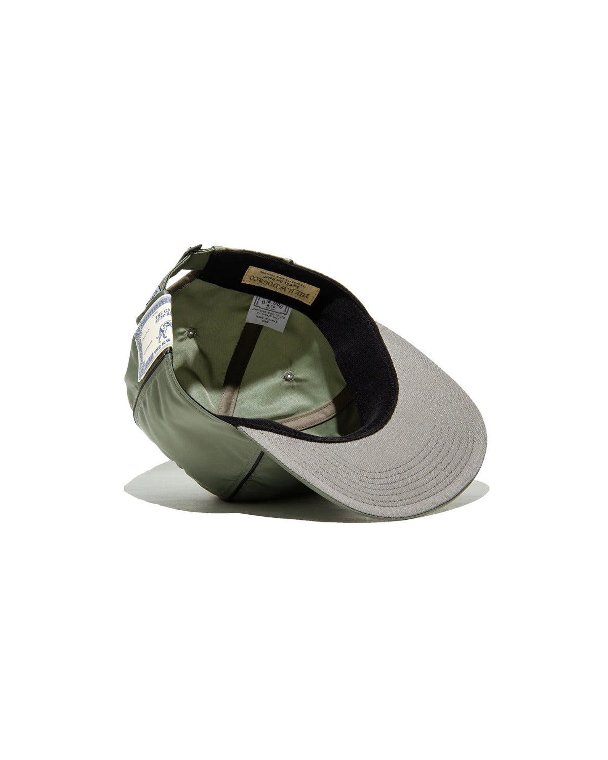 The flat brim and crown are in the shape of a 6PANEL round crown, and the fabric is water-repellent nylon twill with leather piping tape sewn into all the strips.