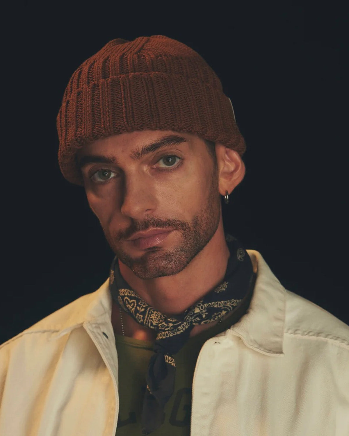 Material: 100% cottonThis seamless watch cap is a reference to the American Red Cross knit caps of the 1940s, using 100% cotton yarn and ribbed and molded halfway up the crown.