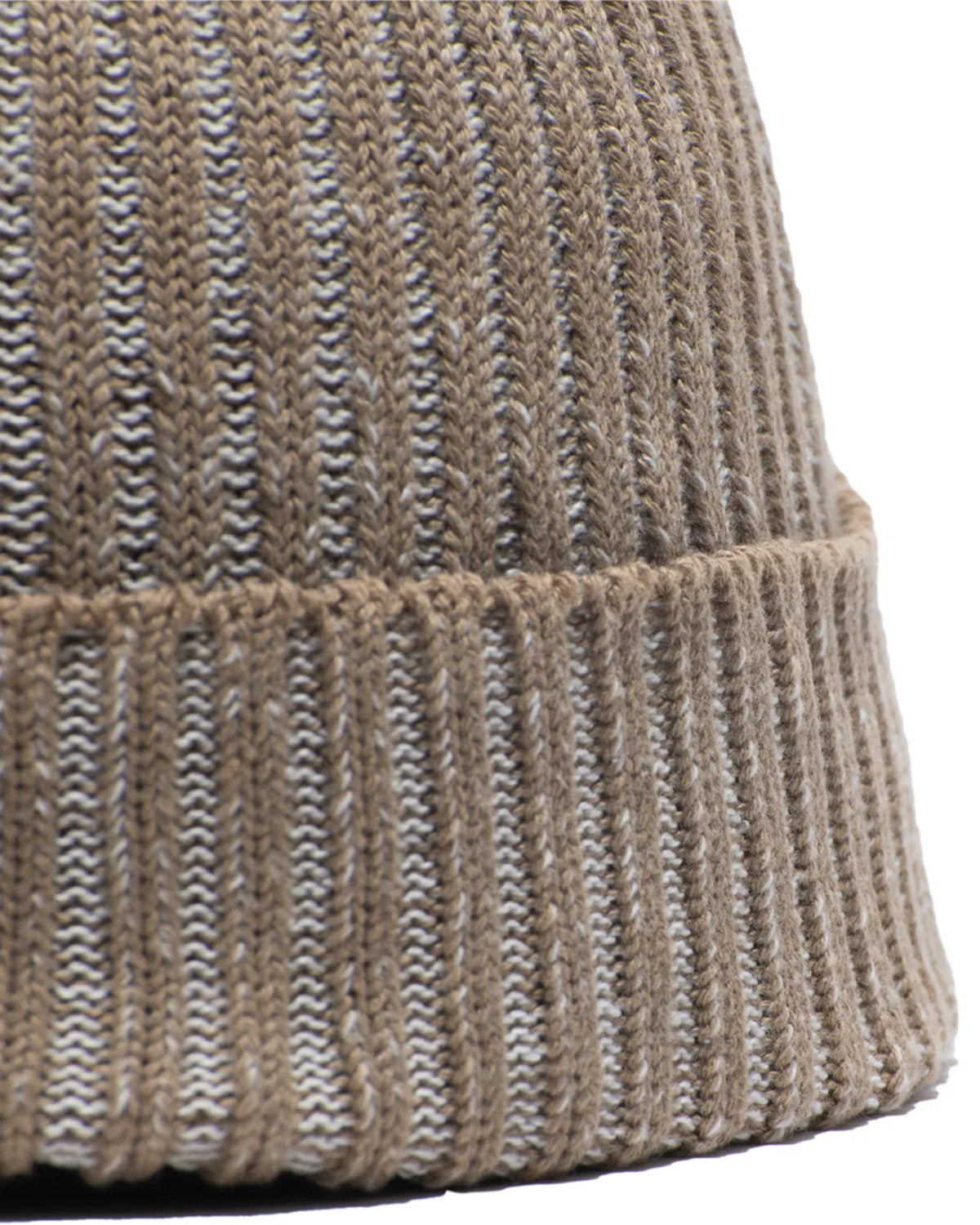 Material: 100% cottonThis is an unusual knit hat with strong elasticity and when worn, the ribs open to reveal the different colored yarn inside.