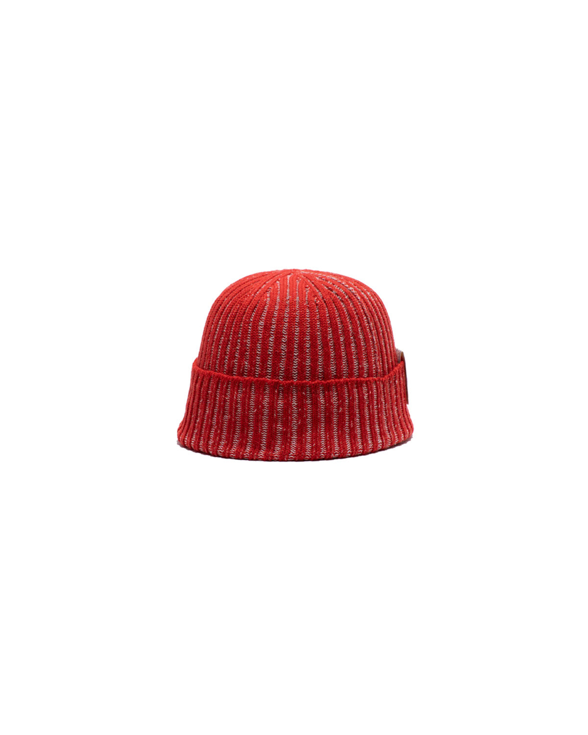 Material: 100% cottonThis is an unusual knit hat with strong elasticity and when worn, the ribs open to reveal the different colored yarn inside.