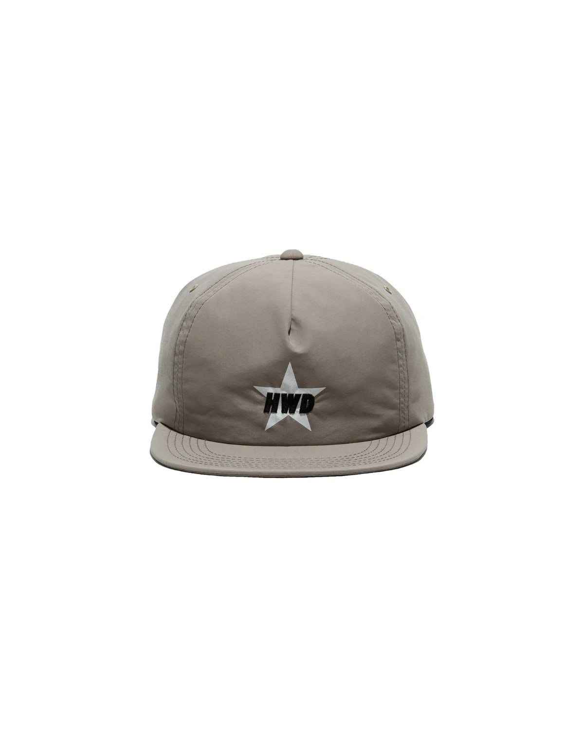 A 5-panel cap with a shallow M-shaped crown and a single front panel.