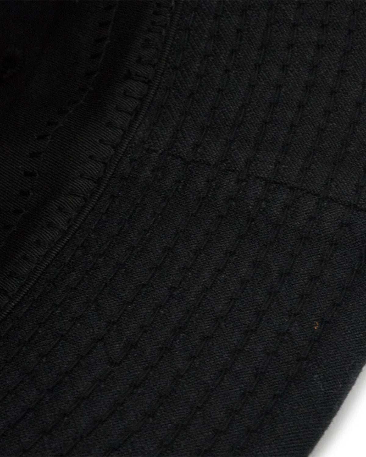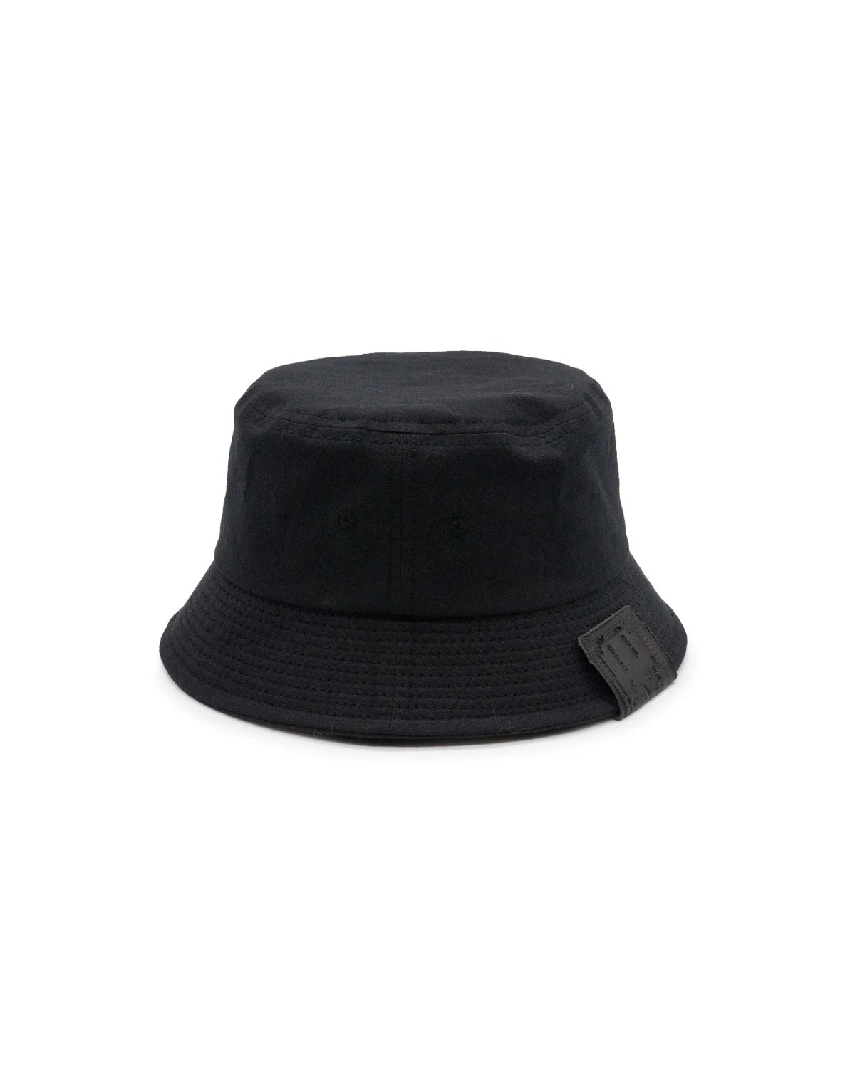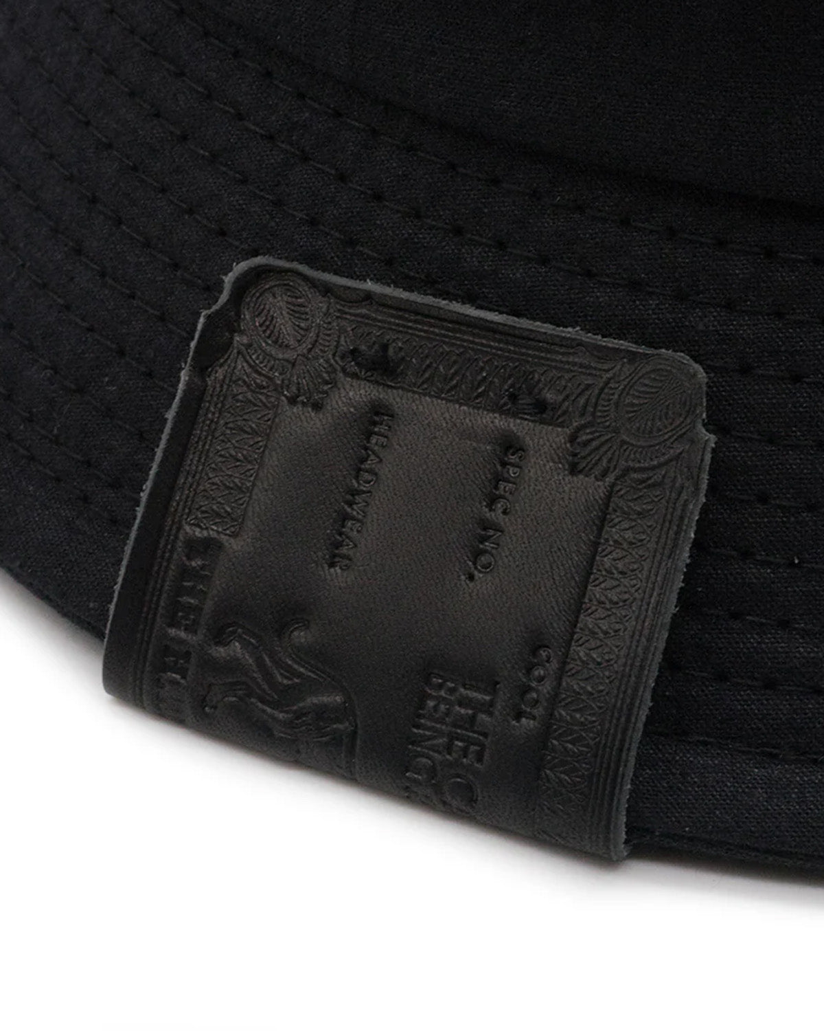 90s style cotton bucket hat with logo embroidered front and our original leather patched back.