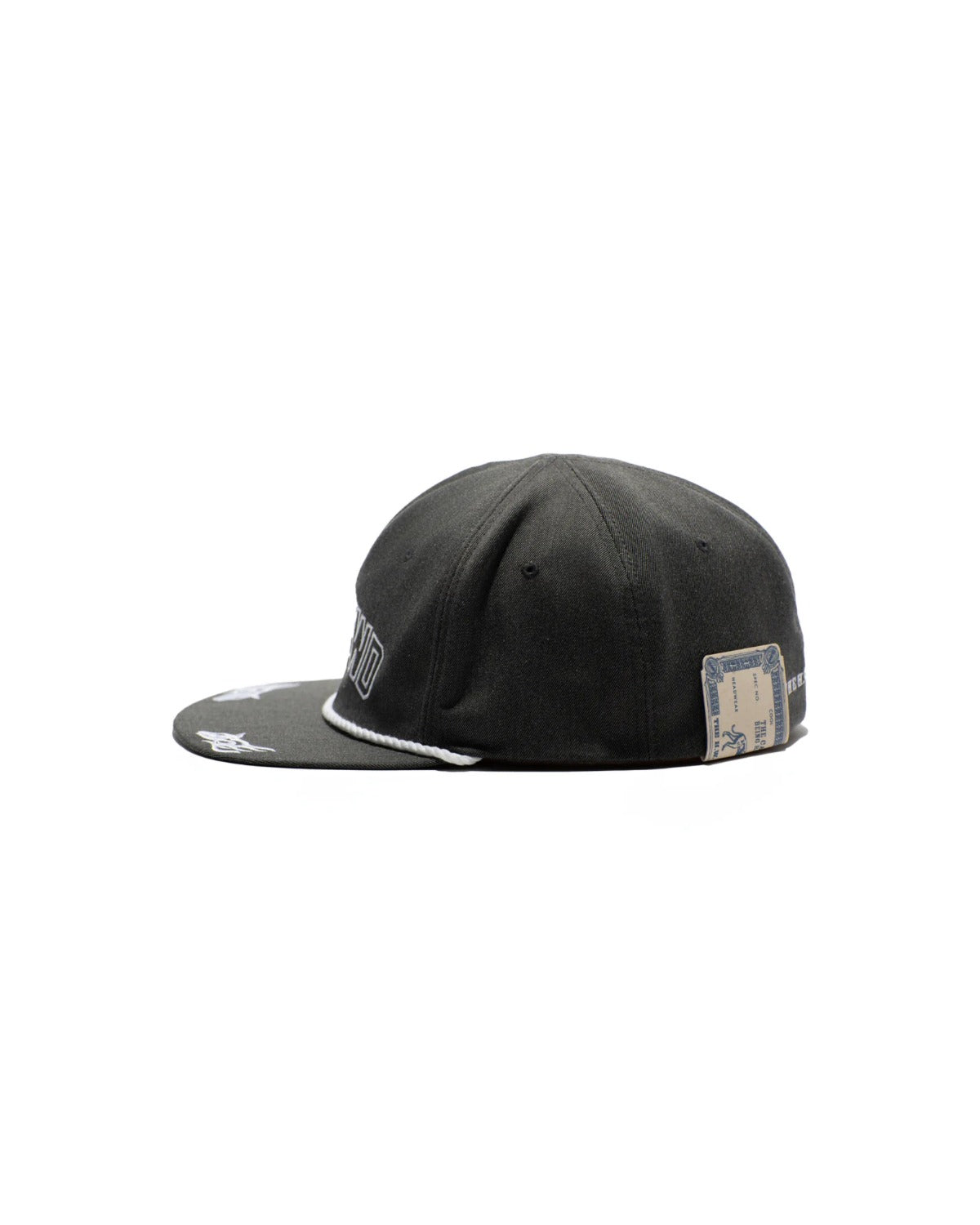 프런트 패널에 「THE HWD」의 테두리 자수, 브림에 개 모티브의 파이어 패턴의 자수가 베풀어진 디자인입니다.