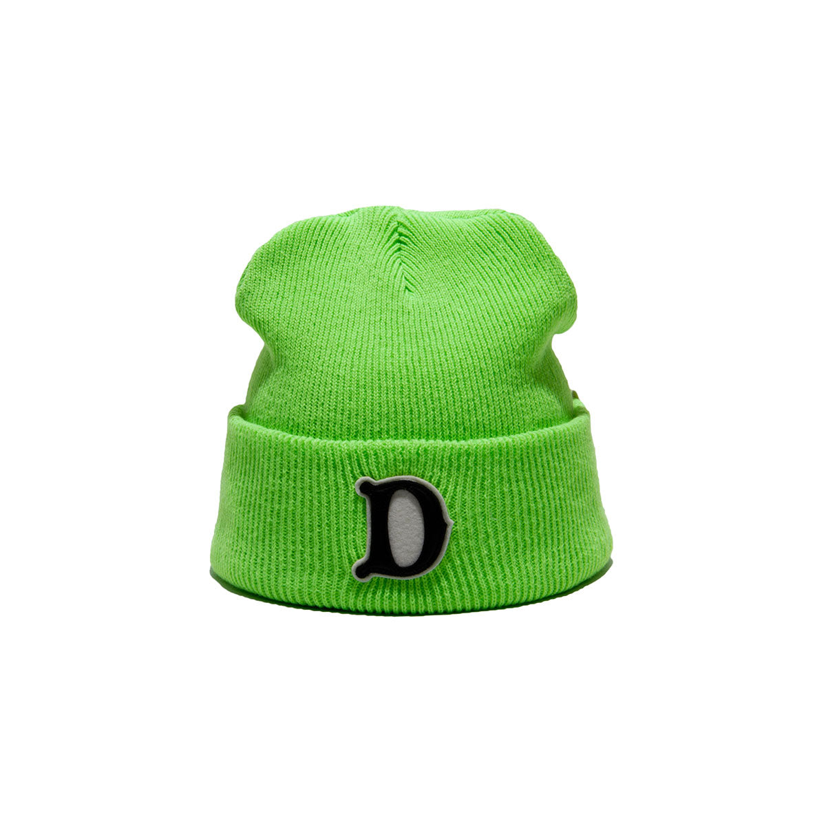 リブに「D」レザーアップリケロゴワッペンが刺繍されたデザイン。