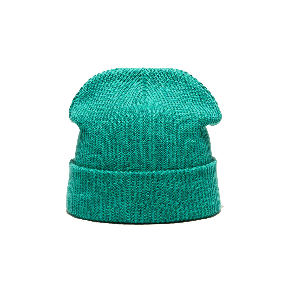 コットン100%糸で丸編みで成形されたニットは天井のみロックミシンで4枚剥ぎで縫製されシンプルな二重構造で仕上げた人気のニットキャップです。