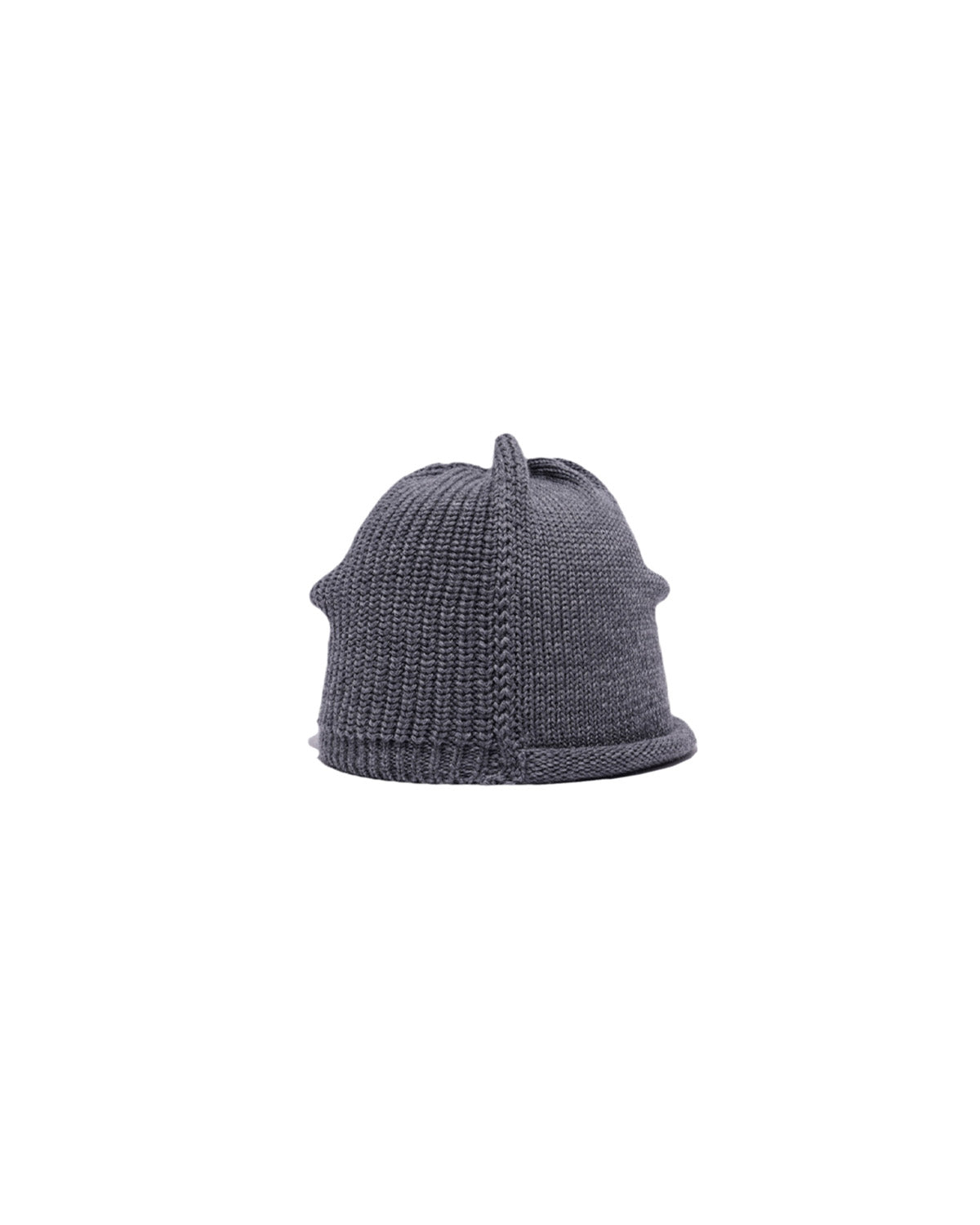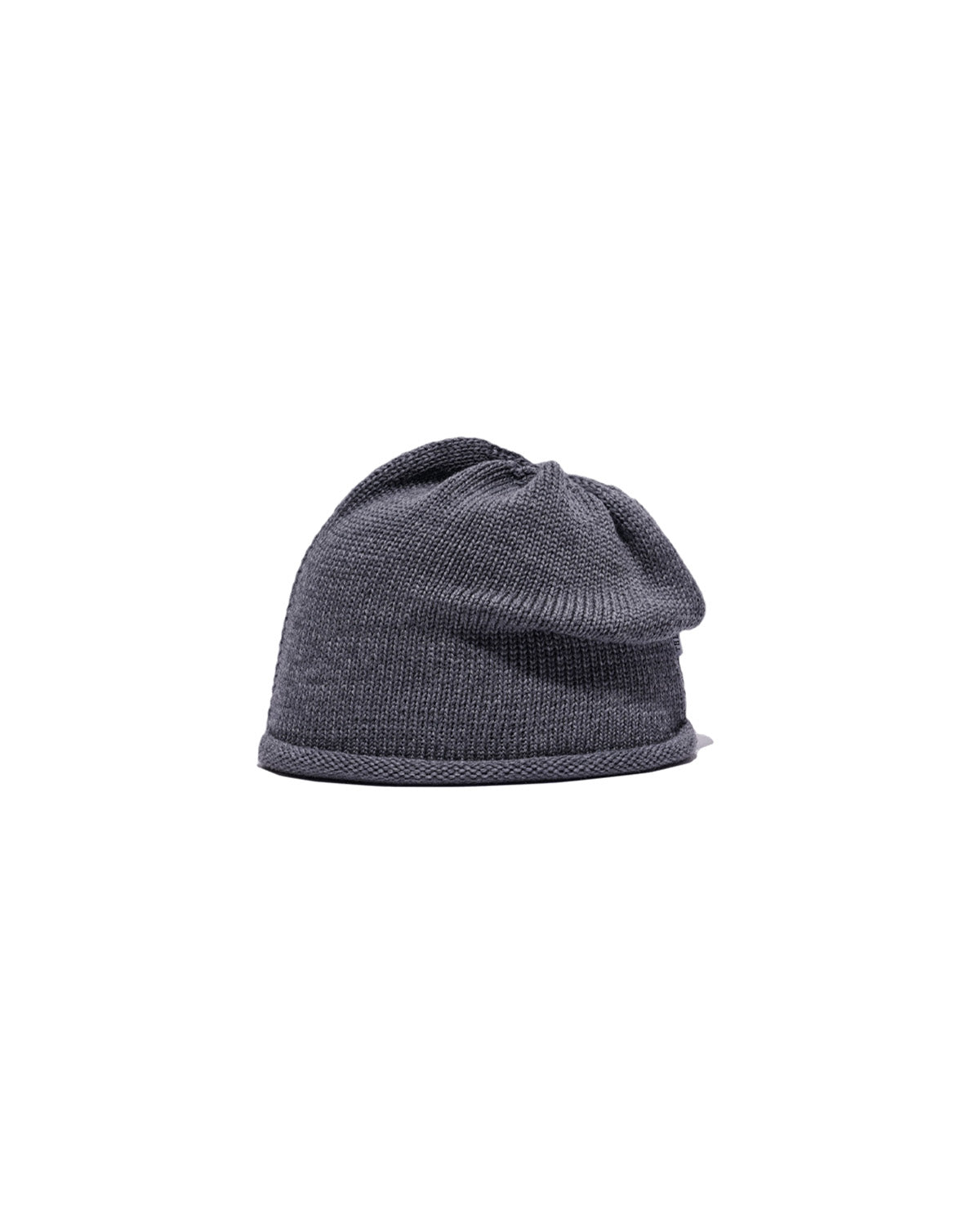 Made from wool, one side features a single watch cap with a rolled hem, while the other side is a simple rib watch cap with a ribbed hem.