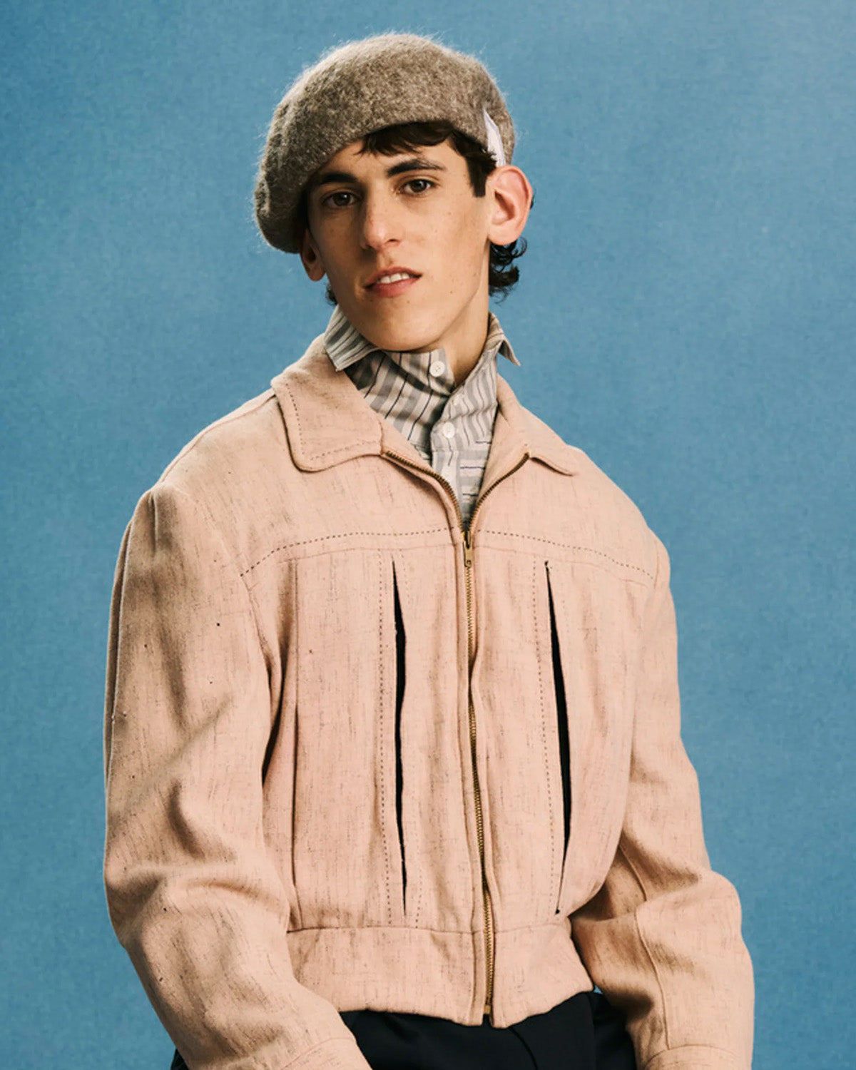 Crafted using two materials: mohair yarn, a natural fiber known for its silky sheen and moisture-wicking properties, and nylon yarn, valued for its lightness and dry feel. This combination creates a uniquely textured, fluffy finish with subtle dimples.